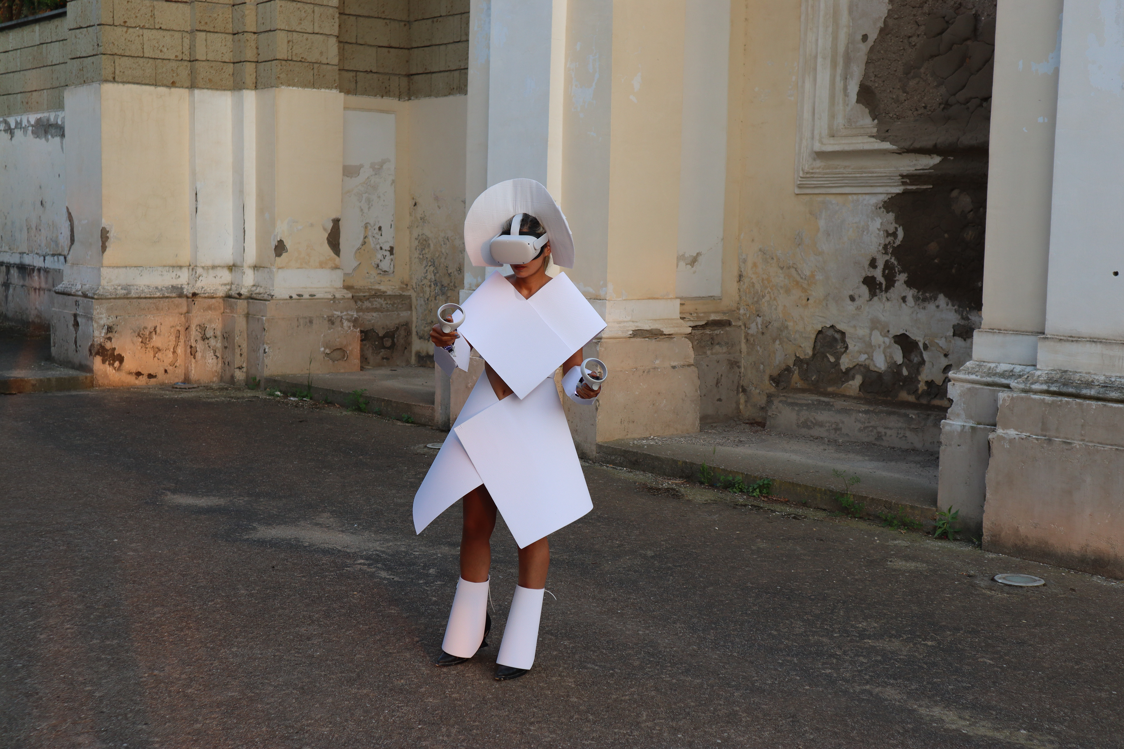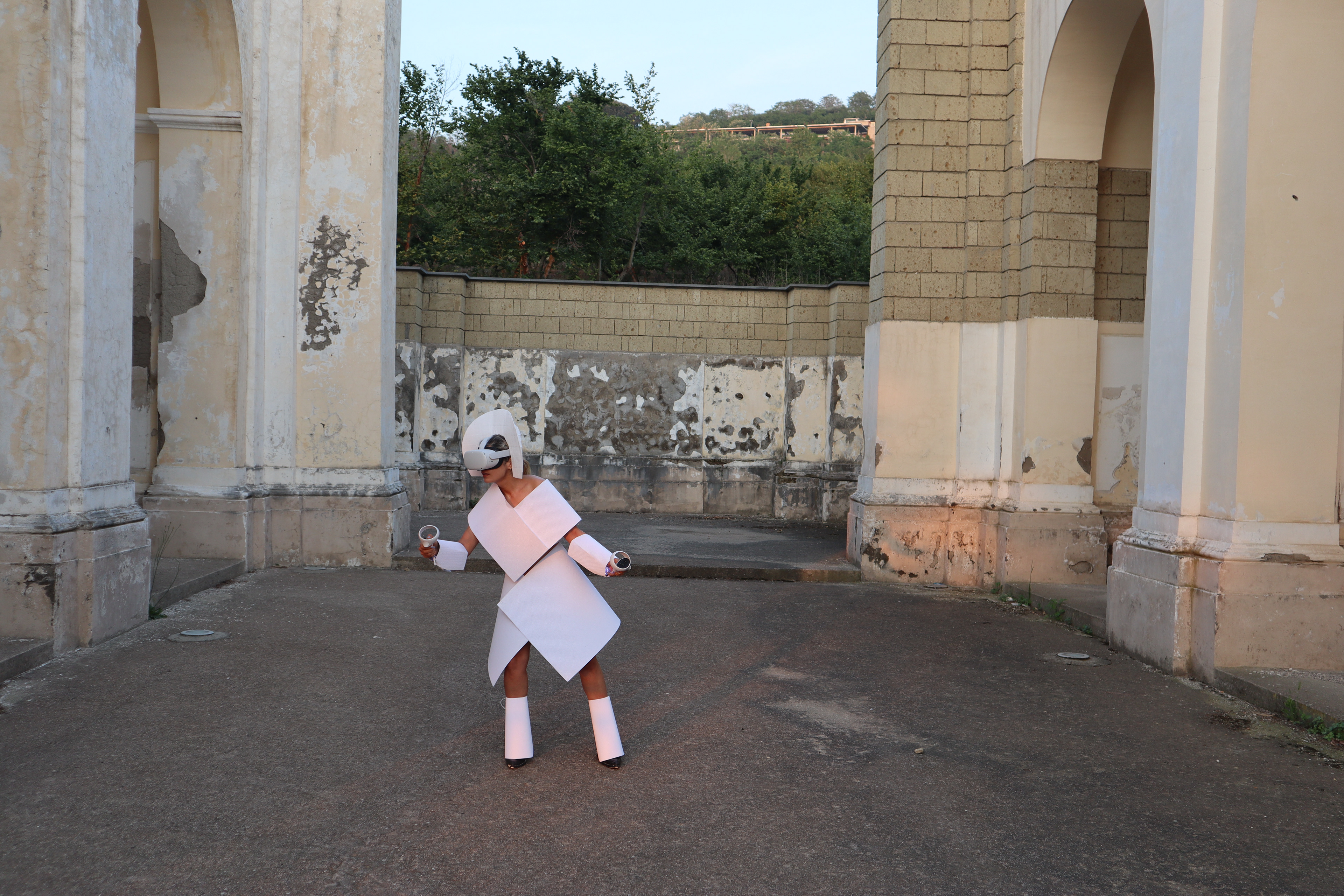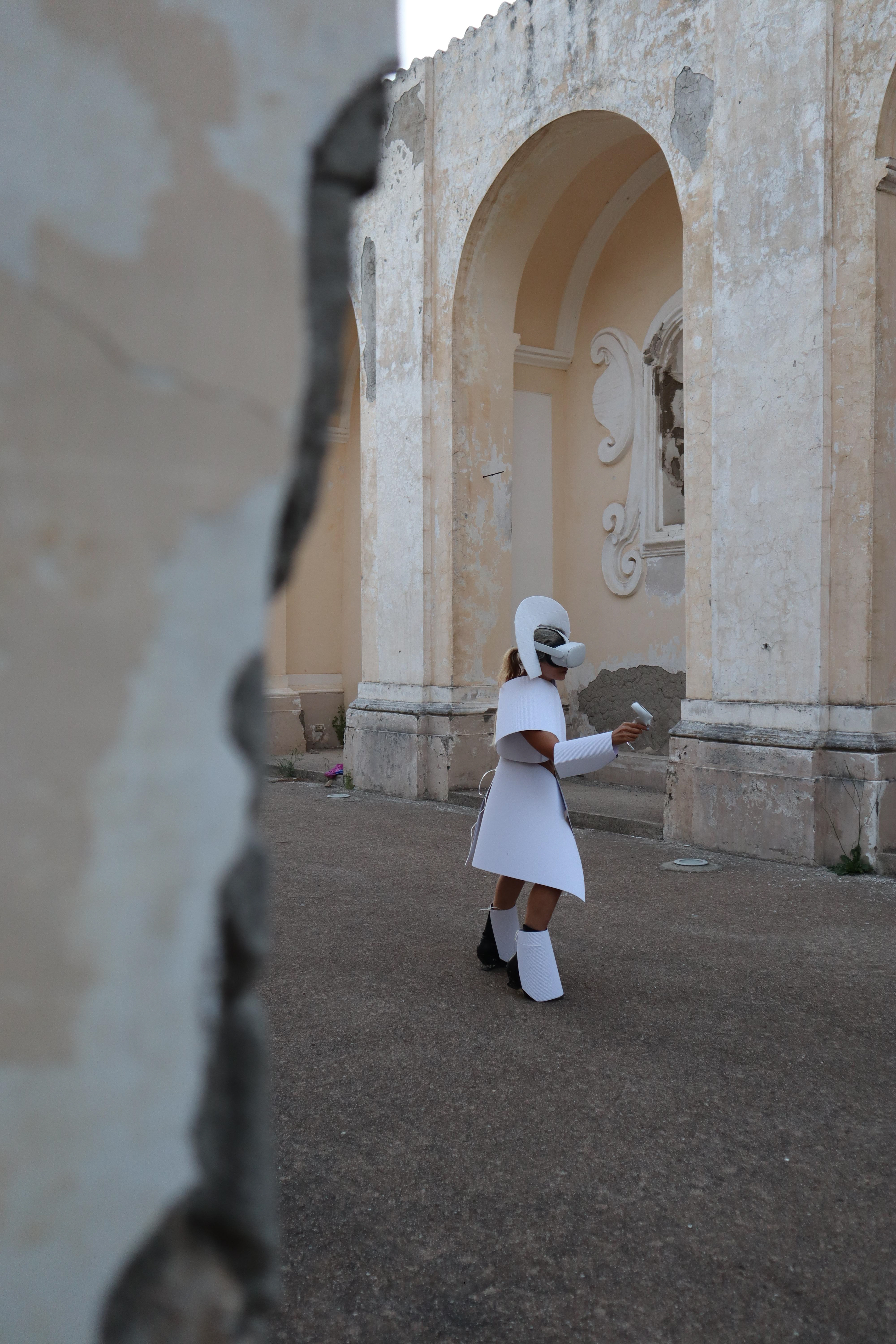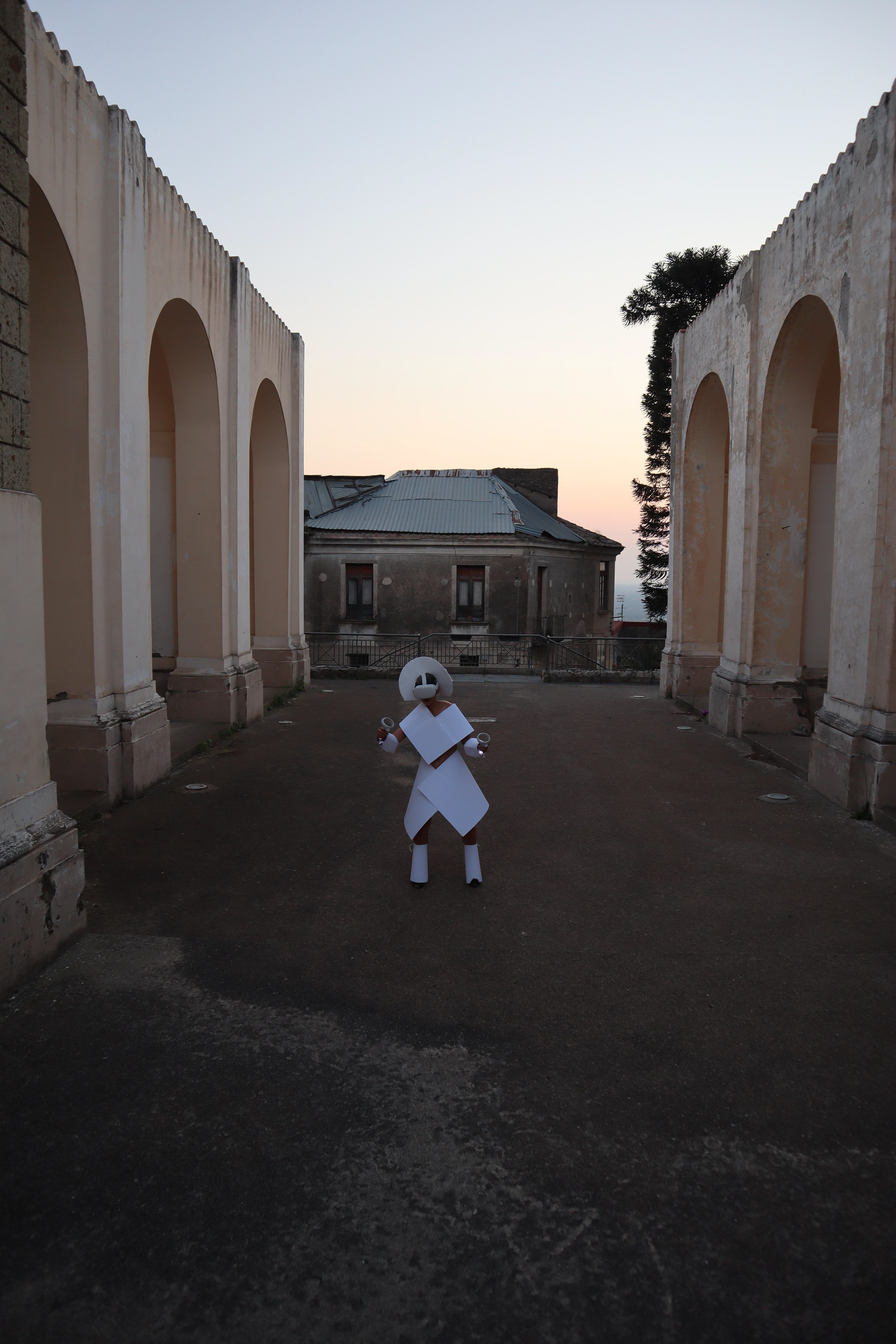 Operating at the intersection of ancestral ruins and digital simulation, Protocol for a Displaced Self utilizes high-tech VR and motion sensors to examine the friction of dual existence. Performed across historical sites and natural landscapes in Italy and Portugal, the work functions as a clinical trial for a consciousness no longer anchored to a single geography.
